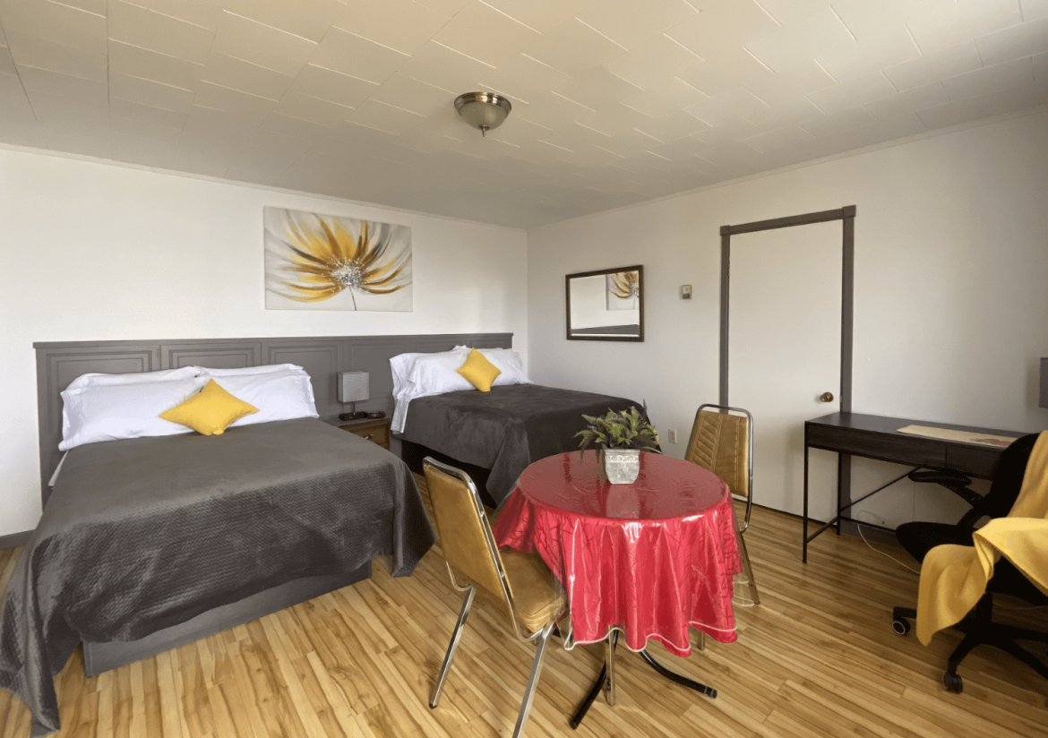 - Équipements : Accès WIFI gratuit, Balcon privé, Bureau de travail, Cafetière Keurig, Coin BBQ partagé, Cuisinette, Micro-ondes, Mini frigo, Non fumeur, Situé au rez-de-chaussée, Téléviseur écran plat