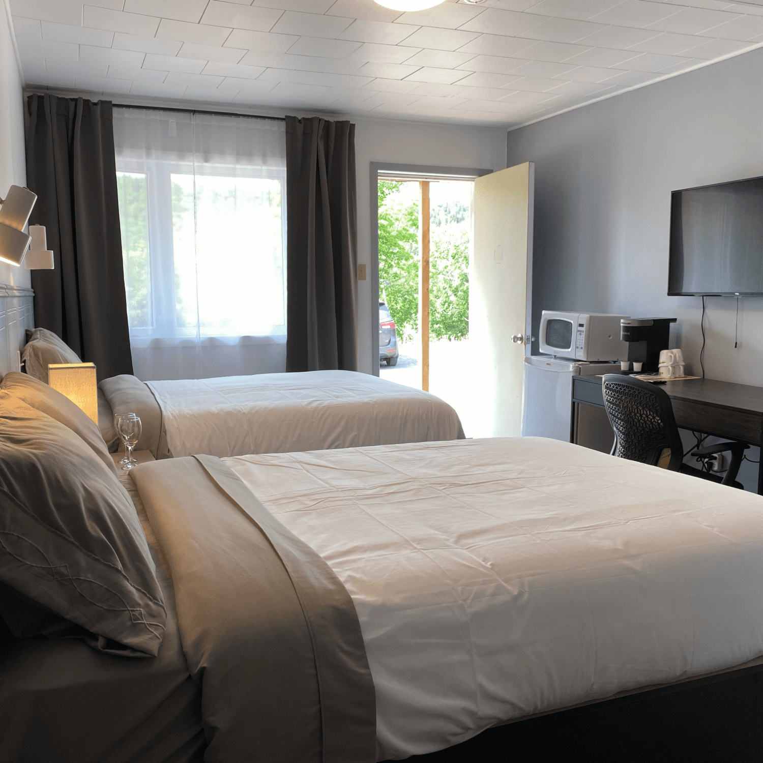 Les 8 unités de l’hébergement vous invitent à la détente et comprennent un mini-réfrigérateur, un micro-ondes, cafetière Keurig, une télévision à écran plat et l’accès Wi-Fi à Internet gratuit. Certaines unités sont munies d’une cuisinette et équipement de base pour cuisiner. Une salle de bain privée où vous y trouverez un sèche-cheveux.